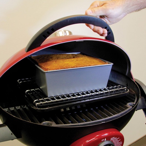 • The baking rack sits in the deflector tray, elevates the dish off the grill and allows the heat to circulate above and below, ensuring even airflow for great baking results