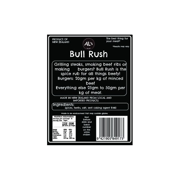 Al's Bull Rush Beef Rub or Burger Spice Blend 100g Mild