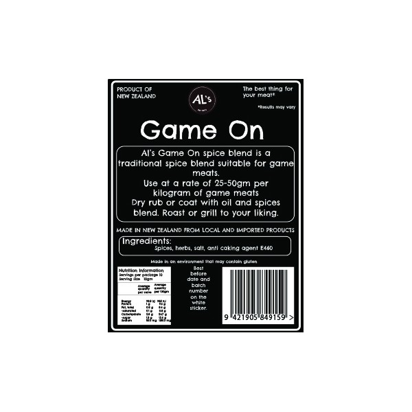 Al's Game On Spice Blend for Game Meats 100g Mild