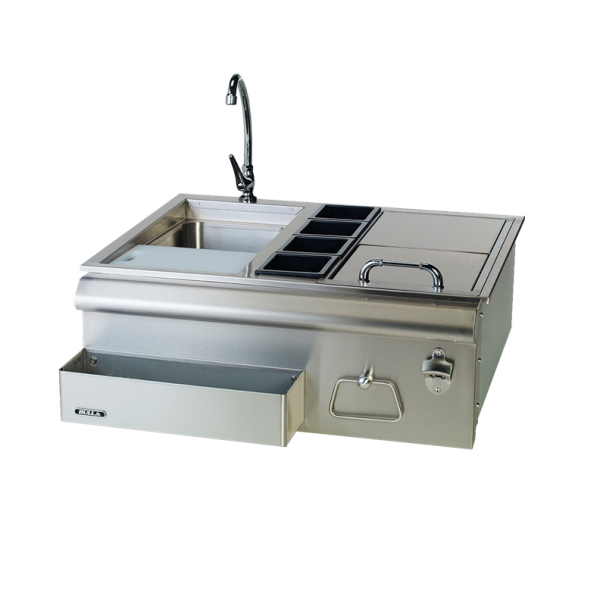 The Bull 76cm Bar Caddy is an essential addition to your outdoor kitchen, offering both functionality and durability. Crafted from 304-grade 16-gauge stainless steel, this bar centre is designed to withstand New Zealand's diverse weather conditions, ensuring longevity and reliability.