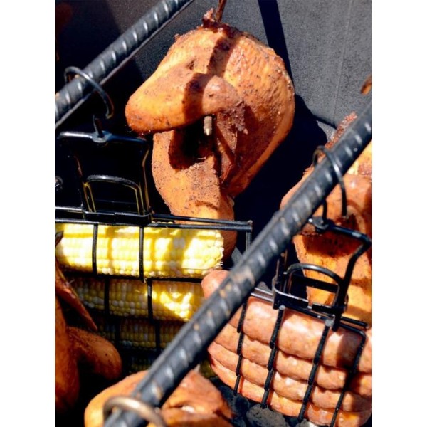 In the Pit Barrel® Cooker you can cook 4 corn cobs, 4 sausages, 1KG of potatoes or brussels sprouts alongside 6 racks of ribs or a 6KG turkey.