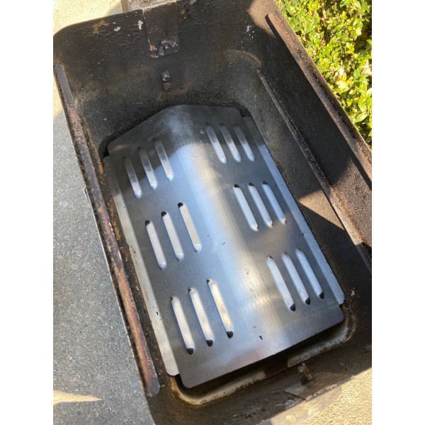 The GA Radiator Plate sits above the charcoal acting as a diffuser, helping to evenly distribute smoke & heat with its louvred vent design. This diffuser plate helps to maintain the airflow to the fuel and creates a barrier between the fuel and the food, for a larger indirect cooking zone.