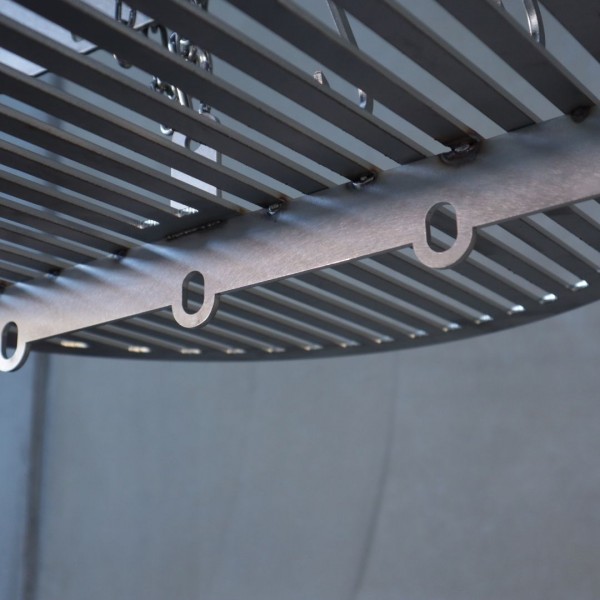 The overhead rack component has an easy one-handed operation hook on it, to lift the rack with the chain and set it at your desired cooking height based on winds and fire temp and type of cook being done.