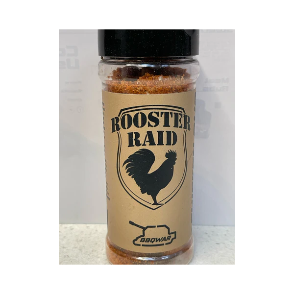 BBQWAR rooster raid multi award winning BBQ rub. Takes your chicken to the next level. Sweet, savoury with a little zing. Goes great on chicken drumsticks. We have used this in Competition Barbecue for the last seven years and have been very successful. Sprinkle some rooster raid on your next chicken barbecue feast.