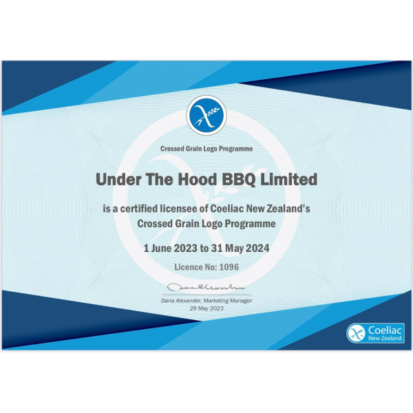 It's official - this product is Certified Gluten Free and is registered to Coeliac New Zealand's Crossed Grain Logo Programme