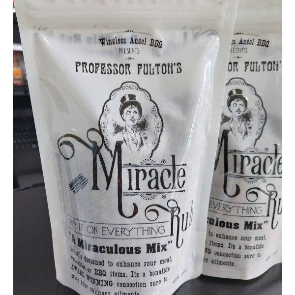 "A Miraculous Mix", Professor Fulton has specially designed this rub to enhance not only bbq but all your savory food experiences.
