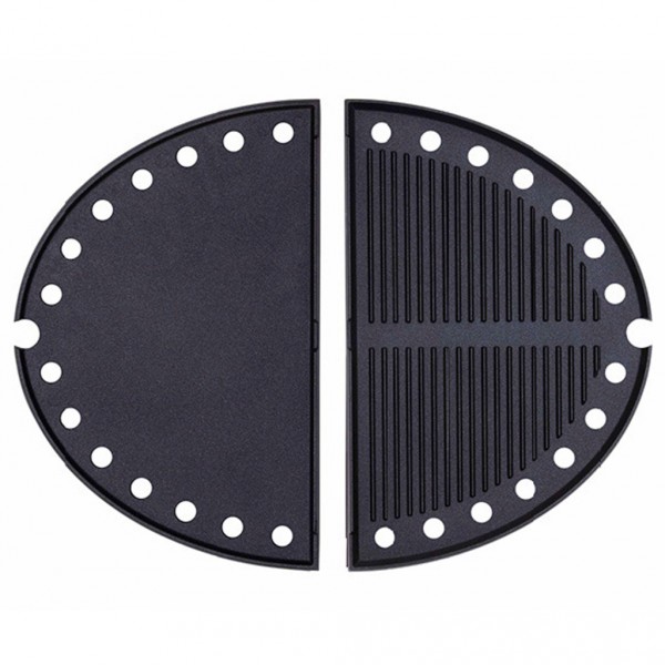 Use one piece on top of the existing grill or two pieces in place of the existing grill. Reversible - with one side smooth and one side griddle, you can prepare fluffy pancakes for breakfast, then grill freshly-caught fish for lunch.